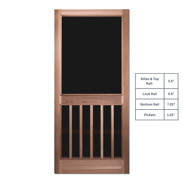 Mahogany offers superior stability and natural resistance to moisture, making it an ideal choice for screen doors that face the elements. Its tight grain pattern accepts finishes evenly, whether you choose to showcase its natural beauty with stain or coordinate with your home’s trim color through paint. The wood’s natural oils provide additional protection against decay, ensuring decades of reliable service.